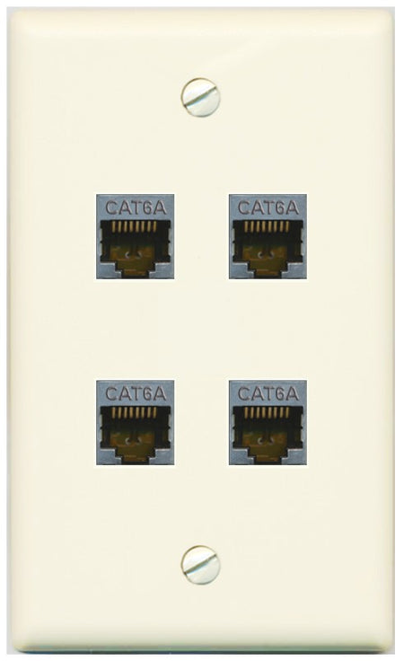 RiteAV - 4 Port Cat6A Ethernet Wall Plate - Flat Style [Light-Almond]