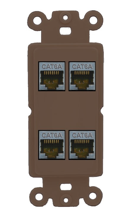 RiteAV - 4 Port Cat6A Ethernet Wall Plate - Rocker [Brown/Brown]