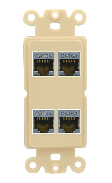 RiteAV - 4 Port Cat6A Ethernet Wall Plate - Rocker [Ivory/Ivory]