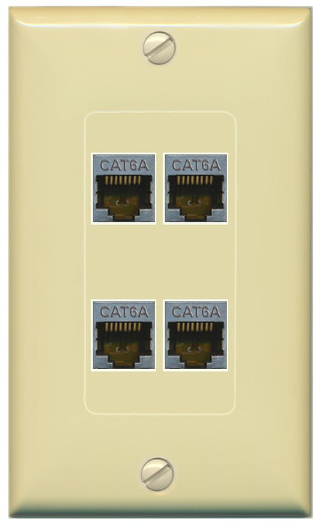RiteAV - 4 Port Cat6A Ethernet Wall Plate - 1 Gang Decorative [Ivory/Ivory]