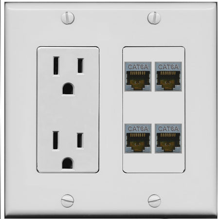 RiteAV - 4 Port Cat6A Ethernet Wall Plate - Outlet [Gray/Gray]