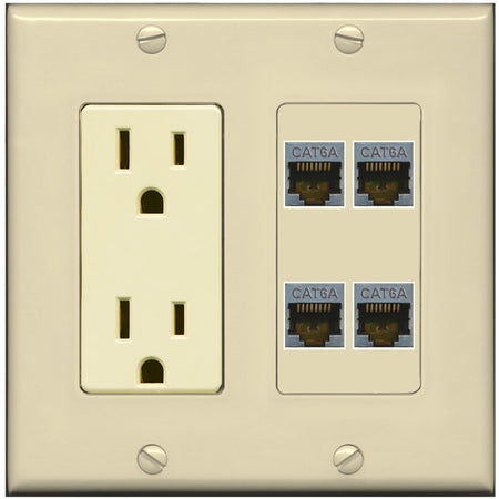 RiteAV - 4 Port Cat6A Ethernet Wall Plate - Outlet [Ivory/Ivory]