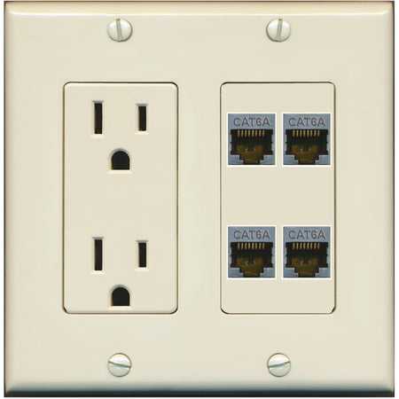 RiteAV - 4 Port Cat6A Ethernet Wall Plate - Outlet [Light-Almond]