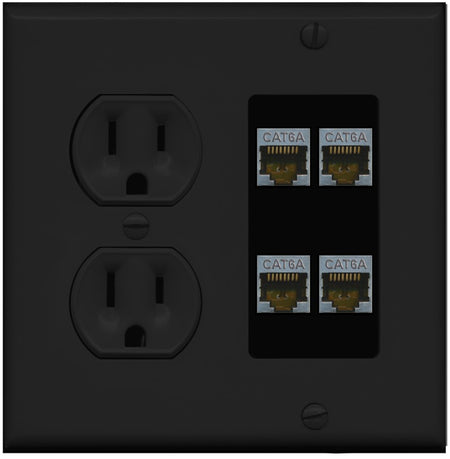 RiteAV - 4 Port Cat6A Ethernet Wall Plate - Round Outlet [Black/Black]