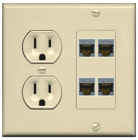 RiteAV - 4 Port Cat6A Ethernet Wall Plate - Round Outlet [Ivory/Ivory]