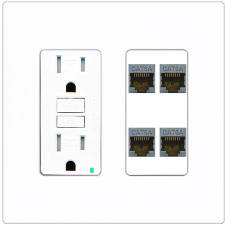 RiteAV - 4 Port Cat6A Ethernet Wall Plate - GFCI Outlet [Screwless White]