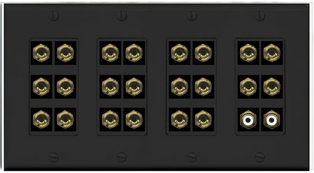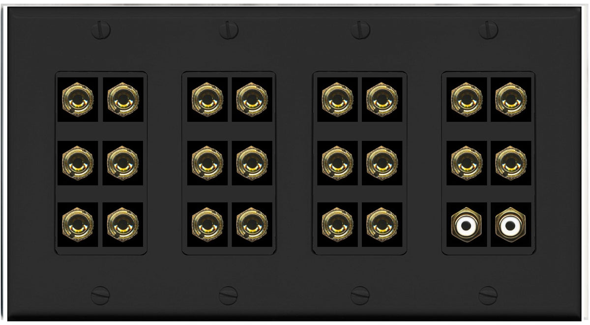 RiteAV 11.2 Surround Sound Speaker 22 Banana Port Wall Plate w/2 x RCA Female Connectors - 4 Gang [Black]