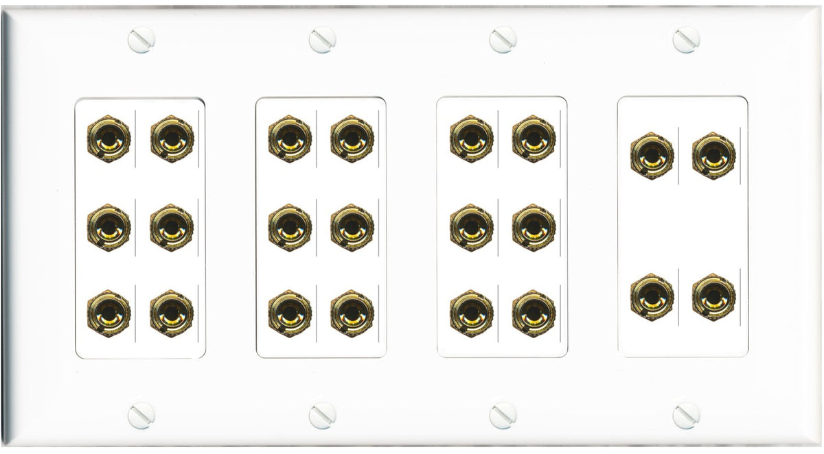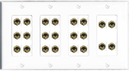 RiteAV 11.0 Surround Sound Speaker 22 Banana Wall Plate Female Connectors - 4 Gang [White]