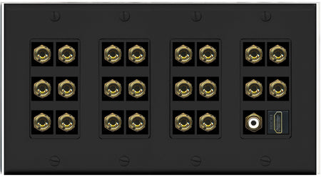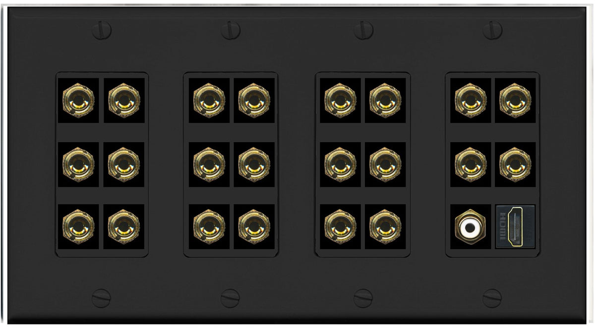 RiteAV 4 Gang 11.1 Surround Sound Speaker Banana Wall Plate with HDMI and RCA Female to Female Connectors - Black