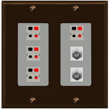RiteAV 4 Speaker 2 Port Coax Cable TV Wall Plate - 2 Gang [Brown/Gray]