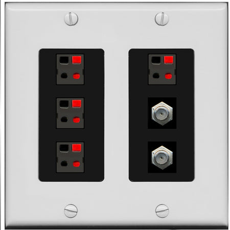 RiteAV 4 Speaker 2 Port Coax Cable TV Wall Plate - 2 Gang [Gray/Black]