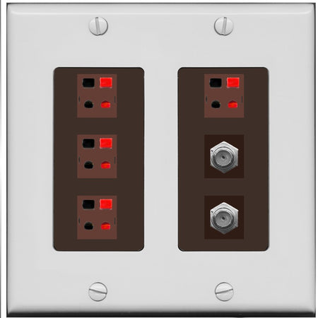 RiteAV 4 Speaker 2 Port Coax Cable TV Wall Plate - 2 Gang [Gray/Brown]