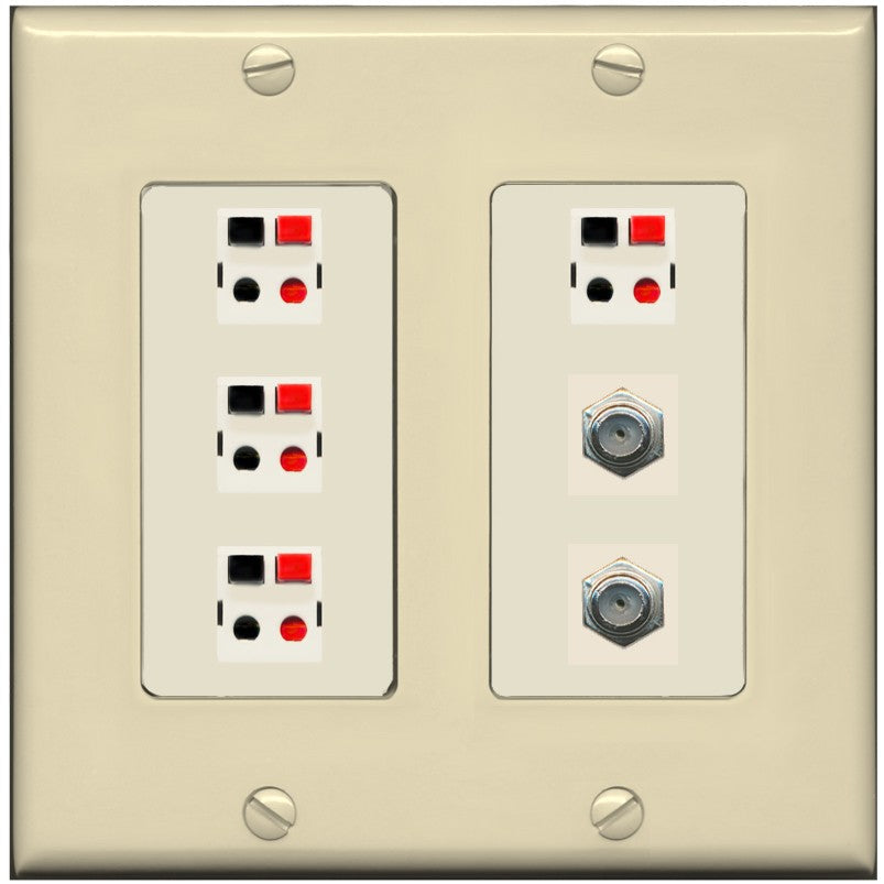 RiteAV 4 Speaker 2 Port Coax Cable TV Wall Plate - 2 Gang [Ivory/Light-Almond]