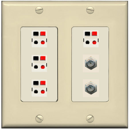 Increase quantity for RiteAV 4 Speaker 2 Port Coax Cable TV Wall Plate - 2 Gang [Ivory/Light-Almond]