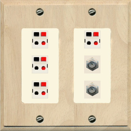RiteAV 4 Speaker 2 Port Coax Cable TV Wall Plate - 2 Gang [Wood/Light-Almond]