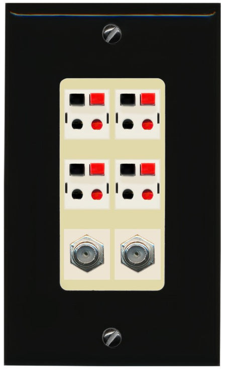 RiteAV 4 Speaker 2 Port Coax Cable TV Wall Plate - 1 Gang Decorative [Black/Ivory]