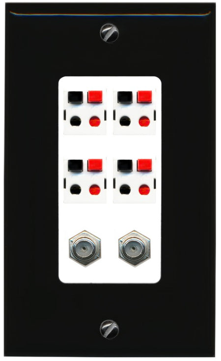 RiteAV 4 Speaker 2 Port Coax Cable TV Wall Plate - 1 Gang Decorative [Black/White]