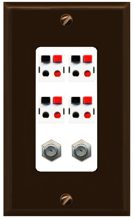 RiteAV 4 Speaker 2 Port Coax Cable TV Wall Plate - 1 Gang Decorative [Brown/White]