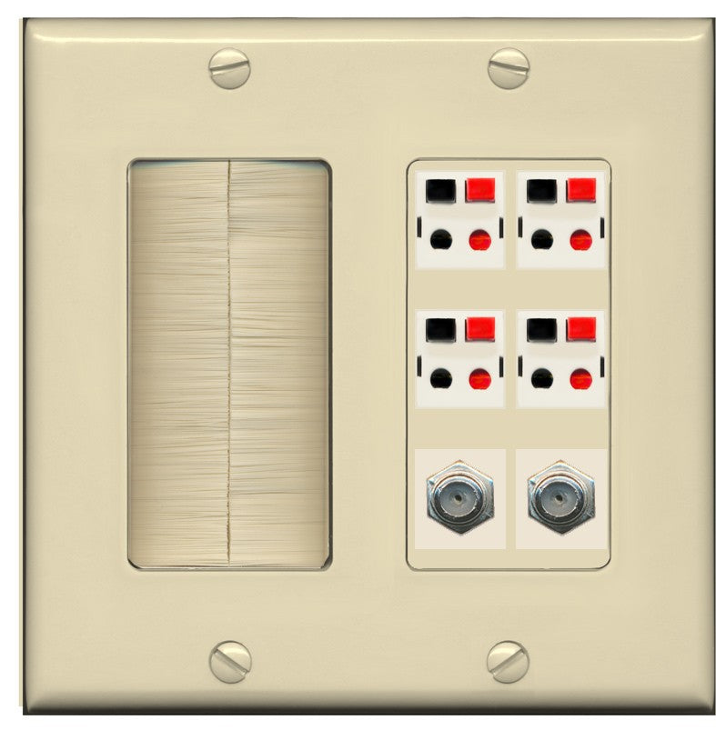 RiteAV 4 Speaker 2 Port Coax Cable TV Wall Plate - Brush [Ivory/Ivory]