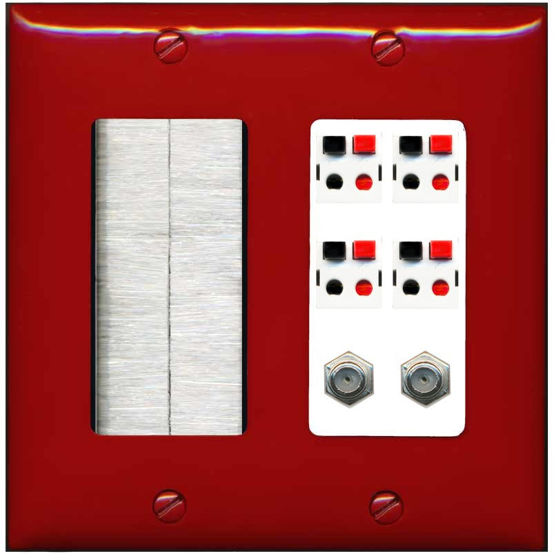 RiteAV 4 Speaker 2 Port Coax Cable TV Wall Plate - Brush [Red/White]