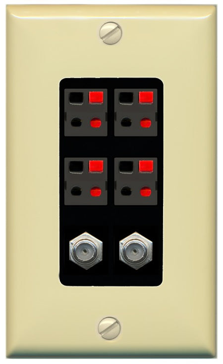 RiteAV 4 Speaker 2 Port Coax Cable TV Wall Plate - 1 Gang Decorative [Ivory/Black]
