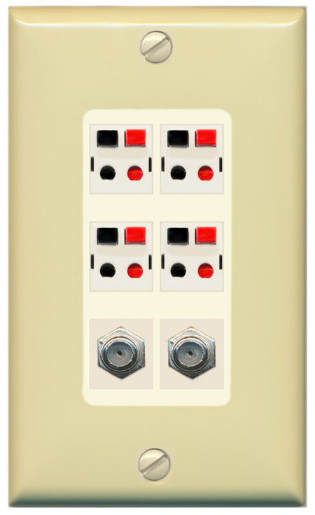 RiteAV 4 Speaker 2 Port Coax Cable TV Wall Plate - 1 Gang Decorative [Ivory/Light-Almond]