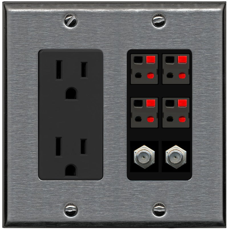 RiteAV 4 Speaker 2 Port Coax Cable TV Wall Plate - Outlet [Stainless/Black]