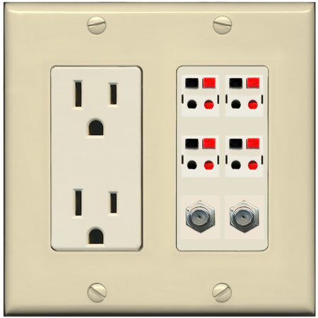 RiteAV 4 Speaker 2 Port Coax Cable TV Wall Plate - Outlet [Ivory/Light-Almond]