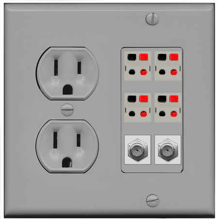 RiteAV 4 Speaker 2 Port Coax Cable TV Wall Plate - Round Outlet [Gray/Gray]