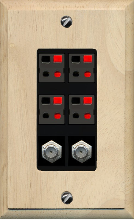 RiteAV 4 Speaker 2 Port Coax Cable TV Wall Plate - 1 Gang Decorative [Wood/Black]