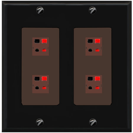 RiteAV 4 Port Speaker Wire Plug Jack Wall Plate - 2 Gang [Black/Brown]
