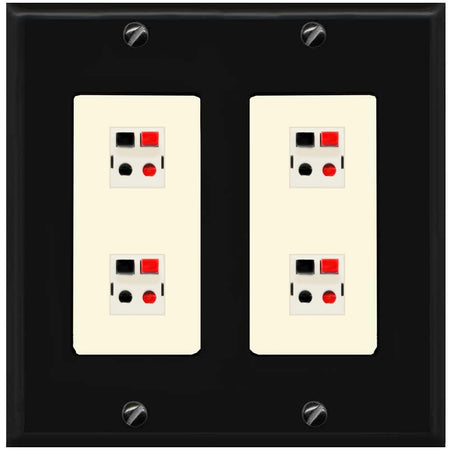 RiteAV 4 Port Speaker Wire Plug Jack Wall Plate - 2 Gang [Black/Light-Almond]