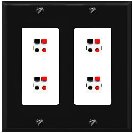 RiteAV 4 Port Speaker Wire Plug Jack Wall Plate - 2 Gang [Black/White]
