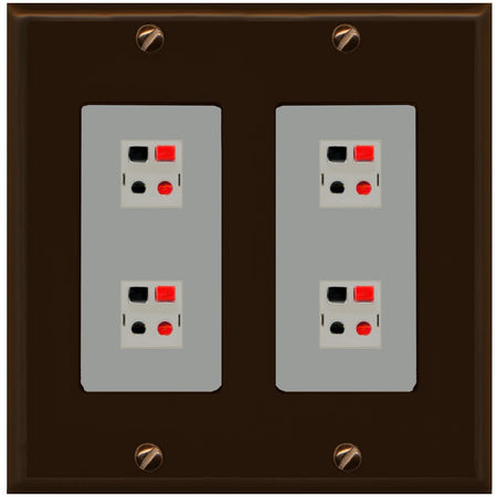 RiteAV 4 Port Speaker Wire Plug Jack Wall Plate - 2 Gang [Brown/Gray]