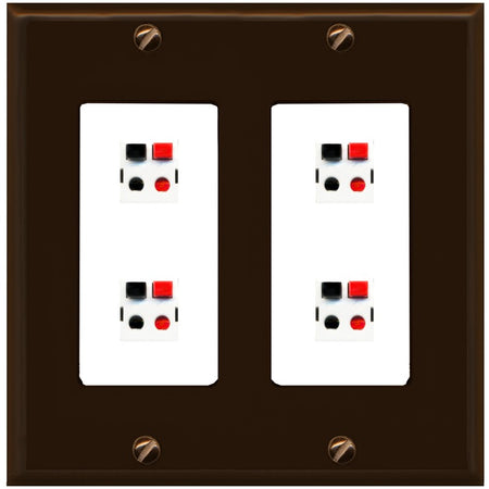 RiteAV 4 Port Speaker Wire Plug Jack Wall Plate - 2 Gang [Brown/White]