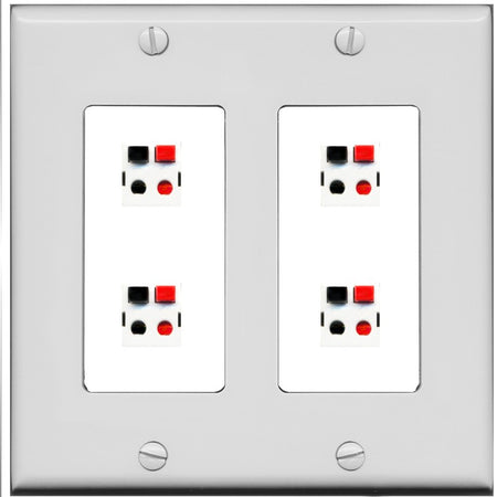 RiteAV 4 Port Speaker Wire Plug Jack Wall Plate - 2 Gang [Gray/White]
