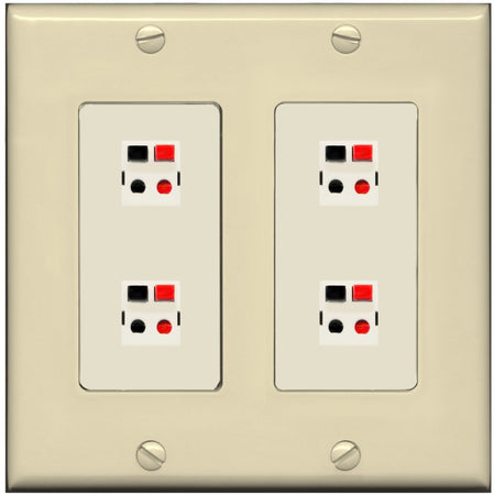 RiteAV 4 Port Speaker Wire Plug Jack Wall Plate - 2 Gang [Ivory/Light-Almond]