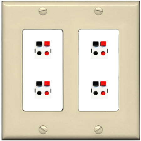 RiteAV 4 Port Speaker Wire Plug Jack Wall Plate - 2 Gang [Ivory/White]