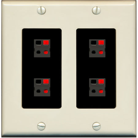 RiteAV 4 Port Speaker Wire Plug Jack Wall Plate - 2 Gang [Light-Almond/Black]