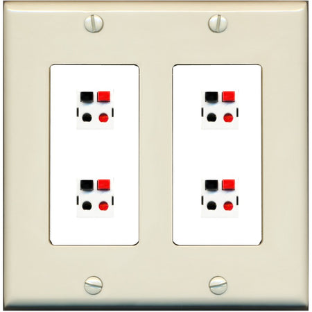 RiteAV 4 Port Speaker Wire Plug Jack Wall Plate - 2 Gang [Light-Almond/White]