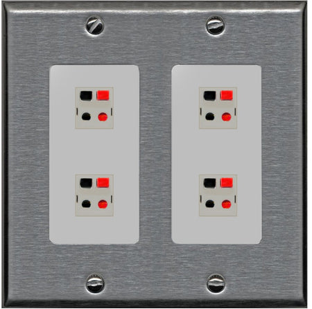 RiteAV 4 Port Speaker Wire Plug Jack Wall Plate - 2 Gang [Stainless/Gray]
