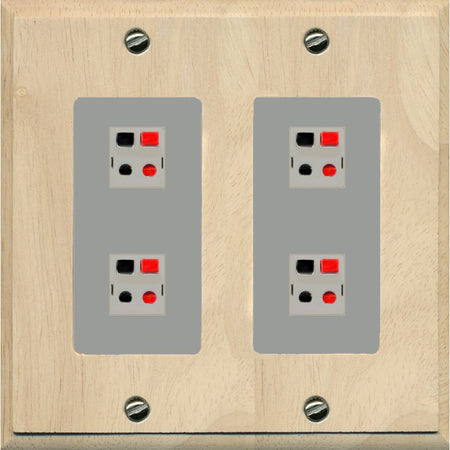 RiteAV 4 Port Speaker Wire Plug Jack Wall Plate - 2 Gang [Wood/Gray]