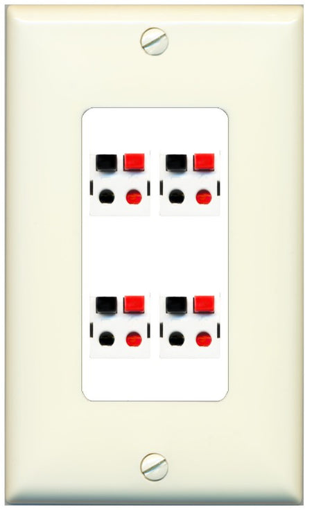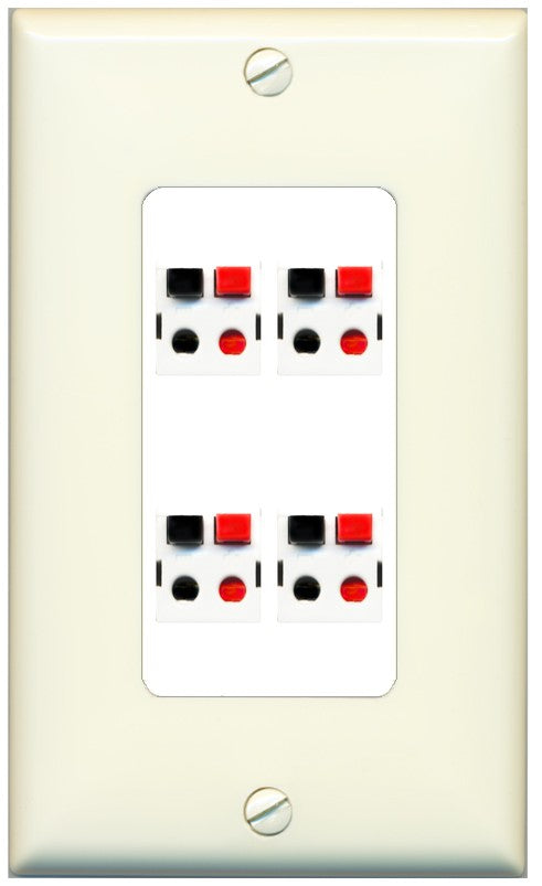 RiteAV 4 Port Speaker Wire Plug Jack Wall Plate - 1 Gang Decorative [Light-Almond/White]