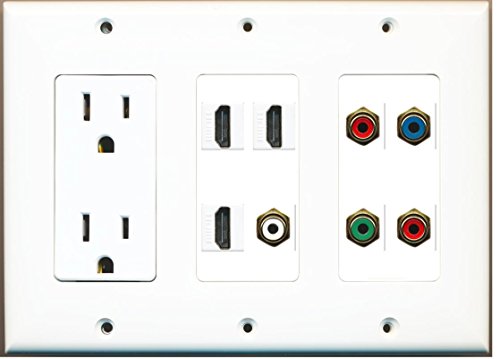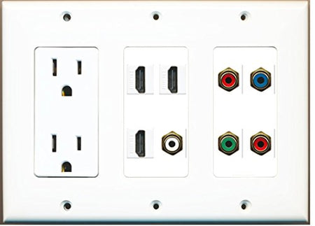 RiteAV - (3 Gang 15A Outlet 3 HDMI Component Audio Video Wall Plate