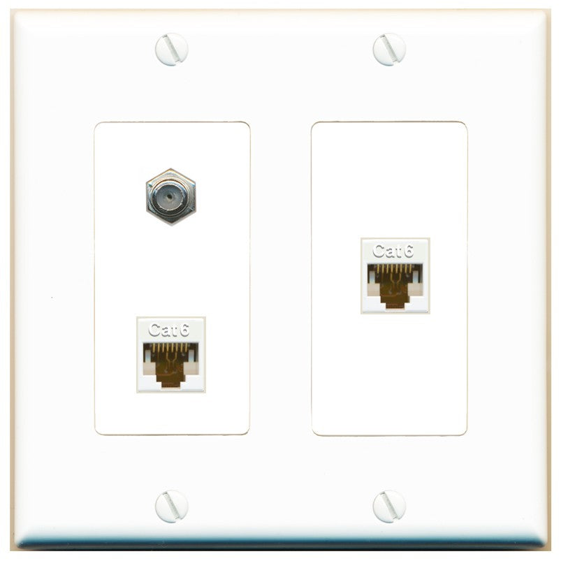 RiteAV - 2 Port Cat6 Ethernet 1 Coax Cable TV Wall Plate - 2 Gang [White]