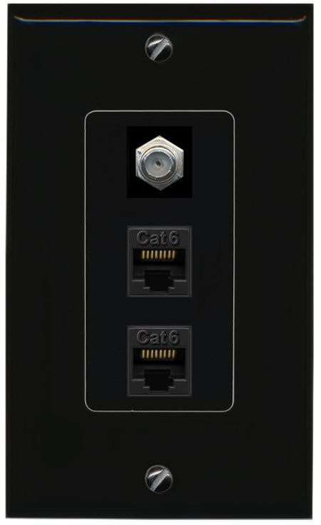 RiteAV - 2 Port Cat6 Ethernet 1 Coax Cable TV Wall Plate - 1 Gang Decorative [Black/Black]