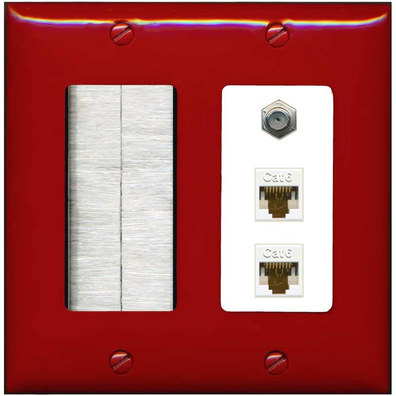 Increase quantity for RiteAV - 2 Port Cat6 Ethernet 1 Coax Cable TV Wall Plate - Brush [Red/White]