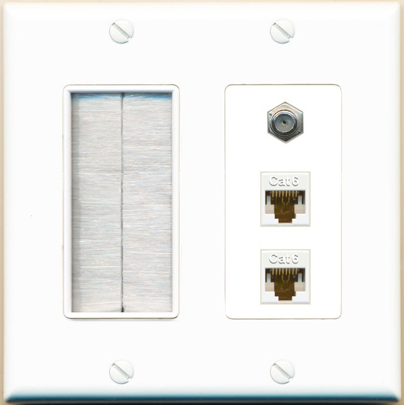 Increase quantity for RiteAV - 2 Port Cat6 Ethernet 1 Coax Cable TV Wall Plate - Brush [White]