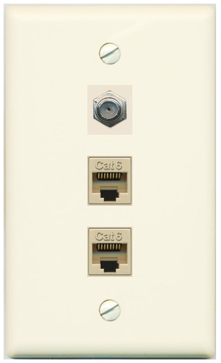 RiteAV - 2 Port Cat6 Ethernet 1 Coax Cable TV Wall Plate - Flat Style [Light-Almond]