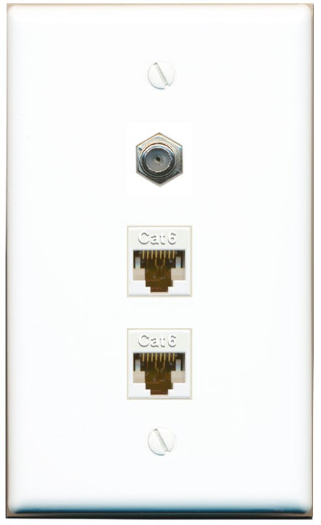 RiteAV - 2 Port Cat6 Ethernet 1 Coax Cable TV Wall Plate - Flat Style [White]
